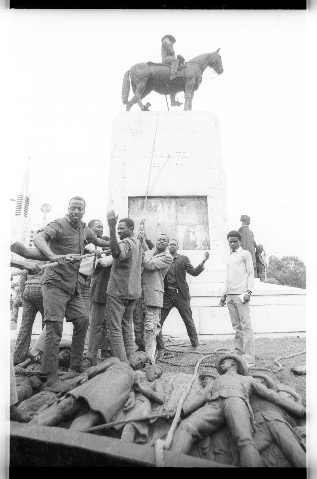 Fig. 3. Ricardo Rangel (1975), “The Other Destiny of Heroes”. Photographic series (Mozambique). Courtesy: Center for Documentation and Photographic Training (CDFF), Maputo. Fig. 4. Statue of President Samora Machel, photographed by Ildefonso Colaço (2022), Praça dos Heróis, Maputo.