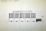 Fig 4. Dessin de la façade nord du projet de Musée dynamique de Neuchâtel par les architectes Jean-Pierre et Renaud de Bosset, février-mars 1954. Archives Musée d’ethnographie, Neuchâtel.