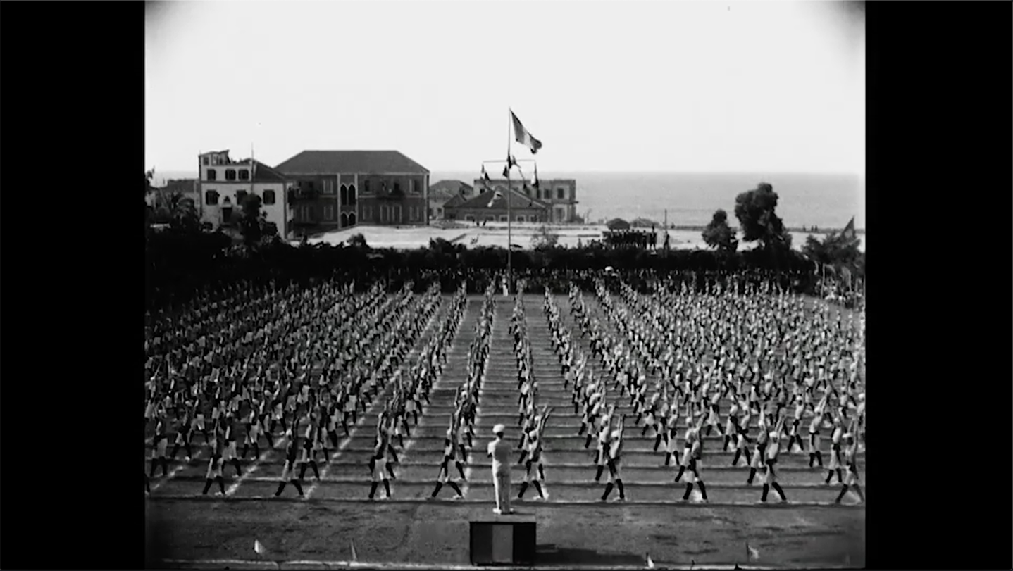 En France, les films d’archives remis au travail dans Topologied’uneabsence font partie d’un corpus d’une vingtaine de titres dont on peut consulter les fiches descriptives sur le site de Gaumont Pathé archives en effectuant une recherche sur les images du Liban datant des années 1920. Le visionnage des vidéos associées à ces fiches est réservé aux professionnel.le.s de l’audiovisuel tandis que les pellicules nitrates de la collection Gaumont Pathé archives sont conditionnées de manière isolées dans les cellules du CNC situées dans l’ancien site militaire de Bois d’Arcy. Cette exclusivité et cette mise à l’isolement disent le double statut de témoin de ces représentations. Quoique faisant délibérément le choix de ne pas s’attarder sur la toxicité physique et symbolique de ces images pour travailler plus directement leur potentiel en se concentrant moins sur les regards portés (par les opérateurs, en contrechamps et par le biais du support qui enregistre ces derniers) que sur les regards tendus (au sens de Gianikian et Ricci Lucchi invoquant Walter Benjamin pour qui « l’image est là pour sauver les hommes dans l’histoire »), Topologie d’une absence désigne en acte une alternative aux pratiques consistant à sceller définitivement cette histoire dans des boites signalant la dangerosité du matériau ou à nettoyer puis congeler celle-ci en en limitant l’accès.