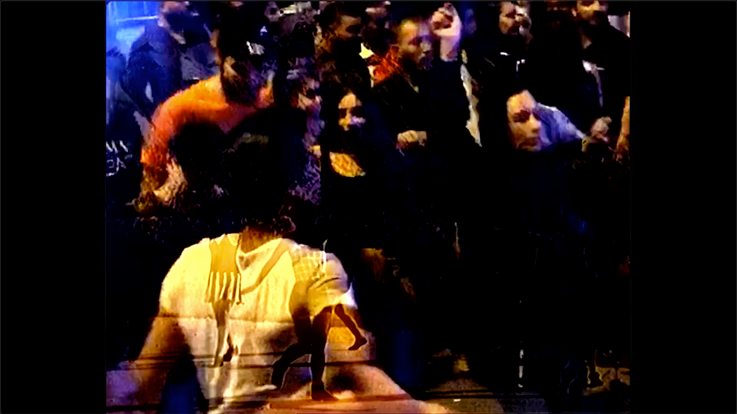 Œuvre de remontage composée à partir d’archives tournées au Liban dans les années 1920, Topologie d’une absence (2021) n’est pas seulement un film évoquant la disparition du port de Beyrouth, visible à de nombreuses reprises dans cette œuvre qui dure une trentaine de minutes. Dans les images originales, les femmes et les hommes qui ne sont visibles qu’à la condition de poser ou de potentiellement servir une autre image que la leur – celles de la civilisation industrielle, celles de l’orientalisme plaçant notamment des corps dans le cadre de sorte à donner une mesure des paysages – y sont également absenté.e.s. Le processus de resignification défait alors cette lecture possible de différentes manières afin de laisser place à d’autres potentialités (cf. image 5). Rami el Sabbagh fait le choix de la soustraction en coupant par exemple des intertitres, une carte ou encore un contrechamp qui cadre le regard posé par un homme en uniforme représentant manifestement le mandat français. Travaillant avec des musiciens, le cinéaste re-monte également ces images en en transformant la cadence et propose notamment une série de répétitions qui fait écho à la cyclicité des vagues et rend le regard porté sur ces images plus songeur. Ce sont ensuite les vagues elles-mêmes, en surimpression numérique, qui miment le trouble de la vue par une recomposition d’ordre musical d’avantage que par décomposition analytique, et qui annoncent une série de visages réapparus et ralentis des habitant.e.s. Ces derniers sont à leur tour progressivement effacés dans un geste de diffraction pratiqué par le cinéaste. Ils laissent finalement place aux visages de manifestant.e.s du soulèvement révolutionnaire en cours depuis le 17 octobre 2019 et, par synecdoque, aux habitant.e.s absenté.e.s par la lutte économique et politique que se livrent les différents acteurs internationaux pour la reconstruction du port13.