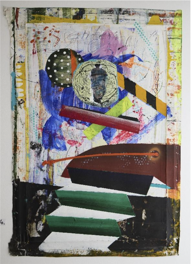 Fig. 9. Ilídio Candja Candja (2009), Olhando para o passado, mixed media on canvas, 100 x 65 cm.