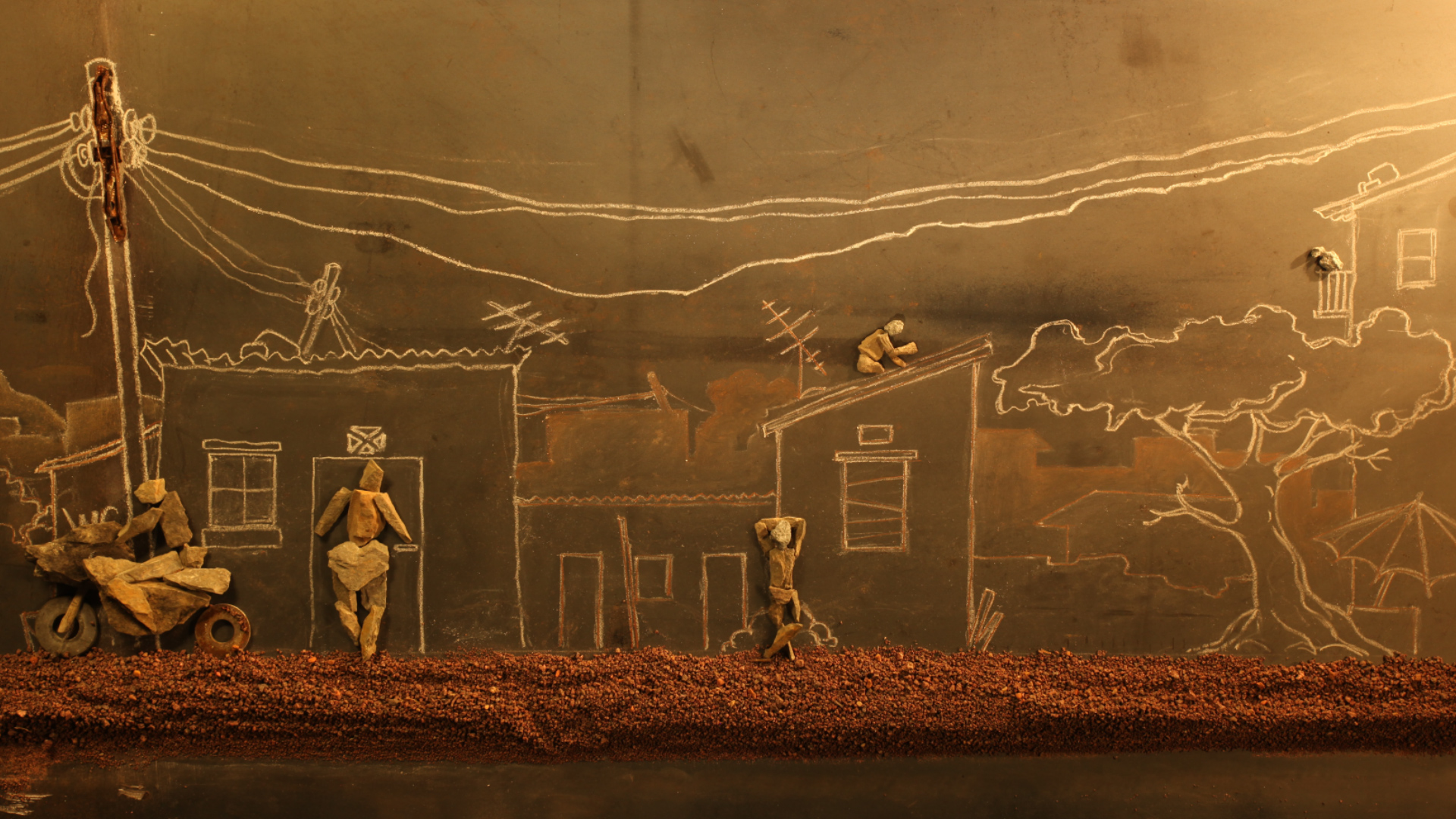 Depuis 2010, Frank Mukunday et Tétshim produisent des films d’animation en autodidacte. Partant de la pratique du dessin (Tétshim) et de la vidéo (Frank), leur duo a fondé le studio « Crayon de cuivre » à Lubumbashi. Après deux films expérimentaux Cailloux et Kukinga, Machini est leur premier film réalisé dans des conditions de production professionnelles.