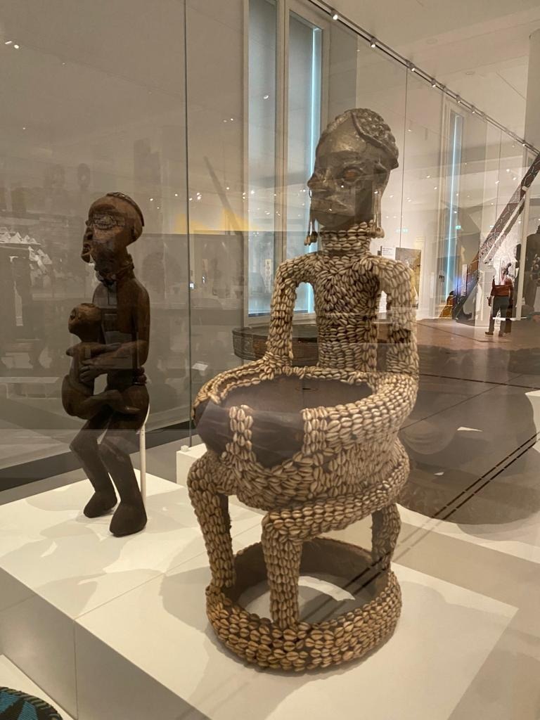 Statue de Ngonnso, fondatrice du royaume Nso au Nord-Ouest du Cameroun, exposée au Musée HUMBOLDT à Berlin jusqu’à l’été 2022. Le gouvernement allemand a annoncé sa restitution en juin 2022. Fogha, 2022.